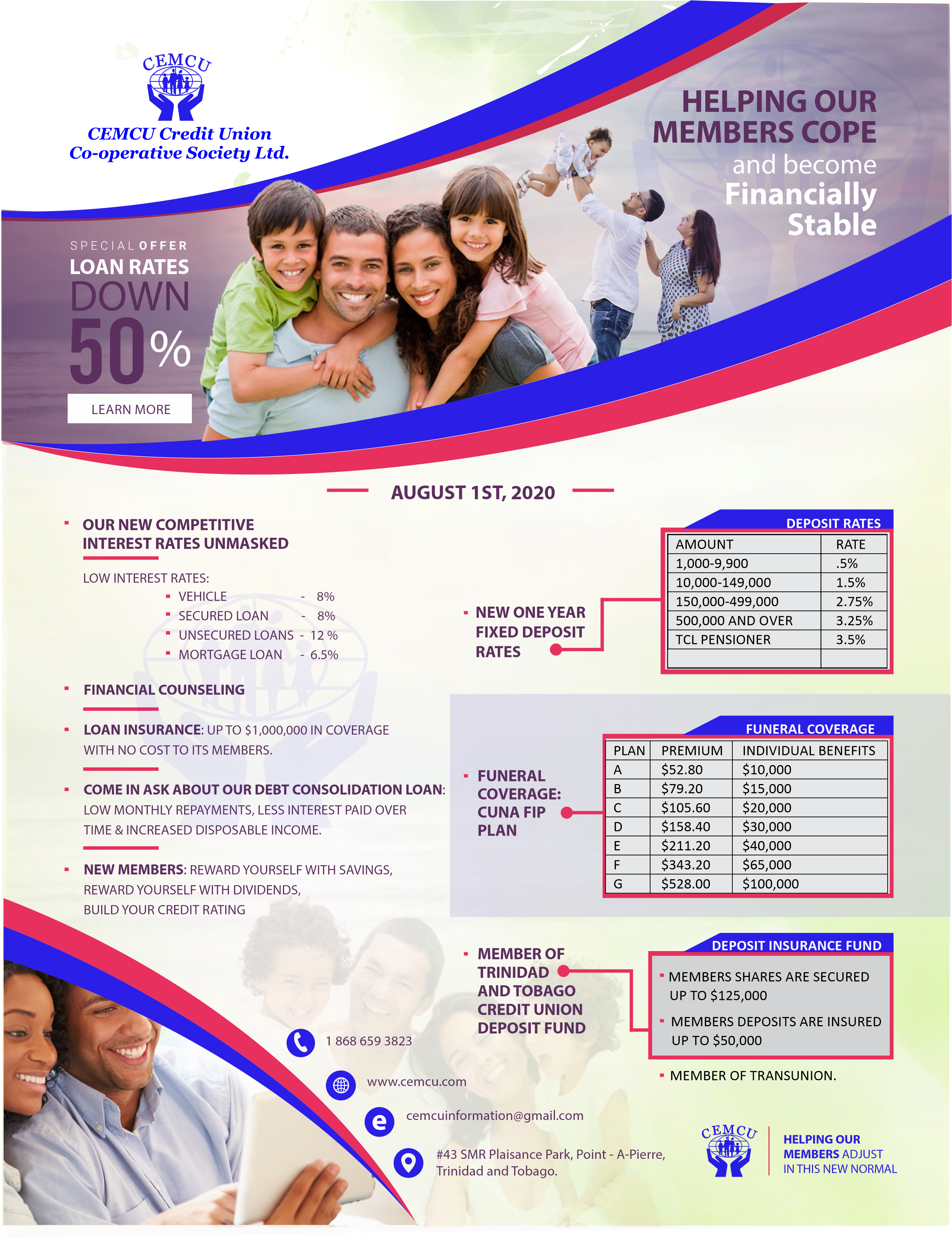 We invest directly and indirectly for our members both in Fixed Investments and Equities. We are constantly providing the best return for our members in both fixed deposits and dividends. It was formed around a common bond of association, that is, employment with Trinidad Cement Ltd and as its first President, Frank Johnson the then Works Manager at TCL. The Credit Union, therefore, started in the main as an employee-based Credit Union, which permitted members, that is employees of the company to save and access loans at reasonable rates of interest. At the end of its first year in operation, 1954, the Trinidad Cement Employees’ Credit Union increased its total asset from a mere seventy-nine dollars on the formation to $20,000 which by today’s standard might not be seen as much but was a significant sum in those days. For the next three decades, from 1964 to 1994 the Trinidad Cement Employees’ Credit Union operated under the stewardship of Mr Everad Dean and had been successful in continuing the positive trend of growth in its total assets, which grew from approximately $250,000. in 1964 to $692,602 in 1974. Over the next decade, CEMCU crossed another threshold passing the million-dollar mark ending in 1984 with over five million dollars in total assets, and which further increased to thirteen million dollars when Everard Dean Stint as President ended in 1994. It was during this period, that Trinidad Cement Employees’ Credit Union began to reveal certain signs of distinction and excellence, starting from when a dividend of 8% was paid. It should be noted that until our recent influx of new members especially children, our average savings per member was $75,000 which is way above the average savings for any credit union in Trinidad & Tobago and indeed the Caribbean and Latin America. Although CEMCU is not one to go after awards, we have received over eight awards from the Trinidad and Tobago Credit Union League and the Credit Union Stabilisation Fund for the continuous excellent performance and the pivotal role we have played in transforming the financial landscape. We plainly comprehend that you need not lose, but rather to gain more cash over your time with us. Although CEMCU is a small credit union in terms of members, it does not see itself in any way restricted by size; and selflessly seeks to promote credit unionism throughout the country, by working together with all stakeholders in the cooperative process. Our size has not stopped us from producing a President of the League, nor two Presidents of the Central Finance Facility, and at present, the Vice President of the Credit Union Stabilisation Fund.CEMCU Serving you from 1954